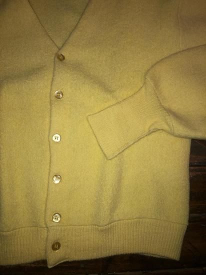 ◆ドレープ感のある若干太めな袖、パール編みが特徴のいわゆるゴルフカーディガンです。