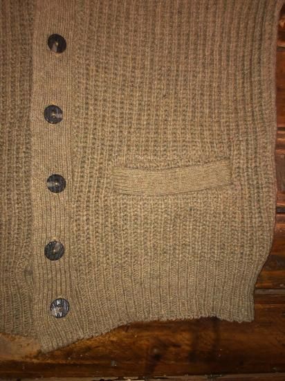 ボリューム感のあるいわゆる畦編み、古いシェットランド特有のザックリとした生地感、ミックス調のカラーリングなど上品かつ魅力的な一品です。