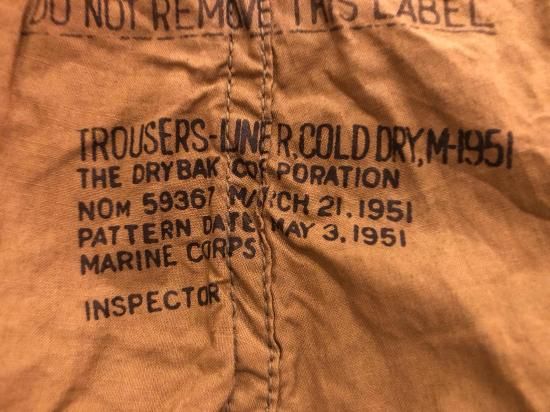 ◆米海兵隊において1951年採用のM-51シェルトラウザーズの専用ライナー。同年採用のM-51ジャケット、パーカー同様パイル素材製。