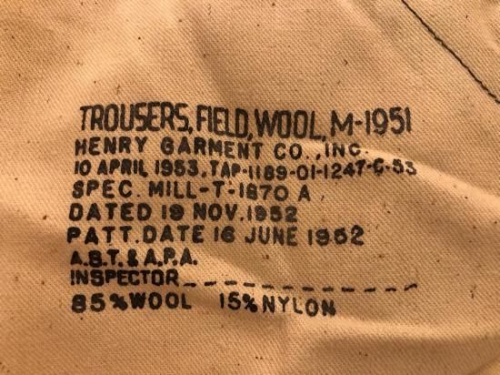 ◆50年代、米陸軍にて採用されたウール素材のフィールドパンツ。