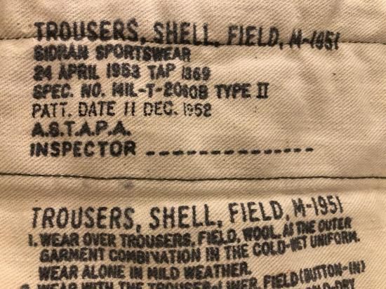 1951年にM-51ジャケットと共に採用された野戦防寒用パンツです。本来防寒用のパンツなので、極寒時にはライナーを取り付ける為、ファティーグパンツ・BDUパンツより太めのシルエットになります。