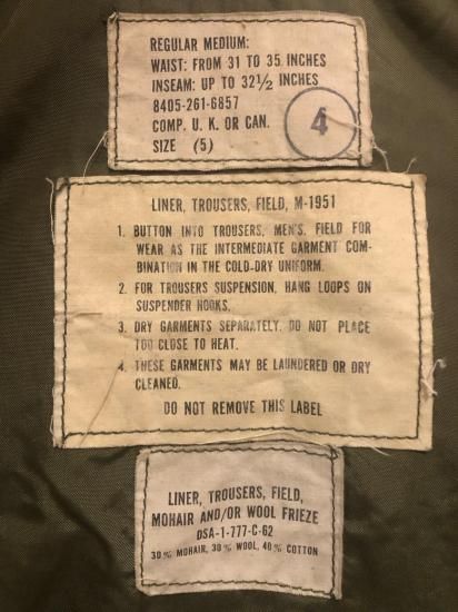 ◆米陸軍において1951年採用のM-51トラウザーズの専用ライナー。同年採用のM-51ジャケット、パーカー同様パイル素材製。